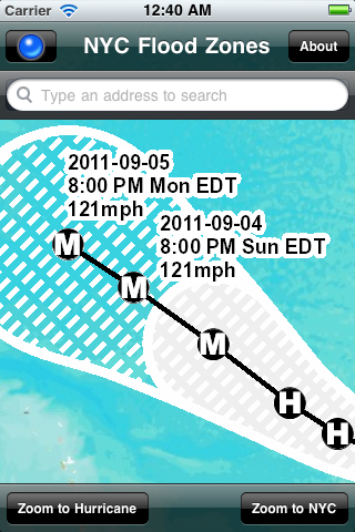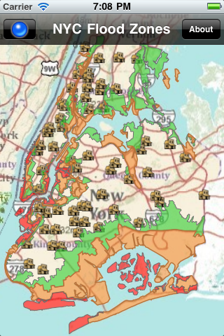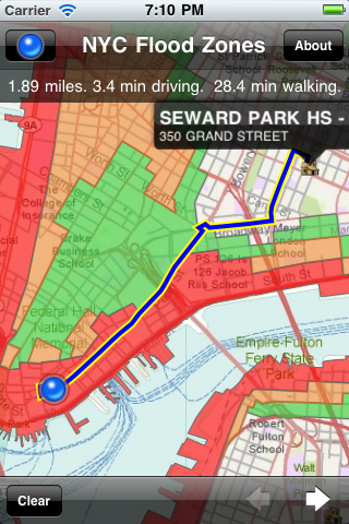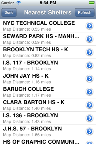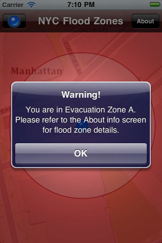 This is an iPhone/iPad app provides evacuation zones and location of shelters throughout NYC region.